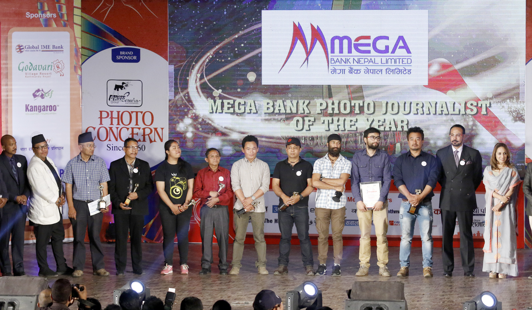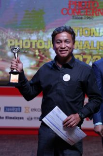 मेगा बैकं नेपाल वर्ष उत्कृष्ट फोटोपत्रकार बाट सम्मानित दि काठमाडौं पोष्टका फोटोपत्रकार निमेश जंग राई  फोटो: एनएफपीजे