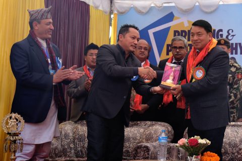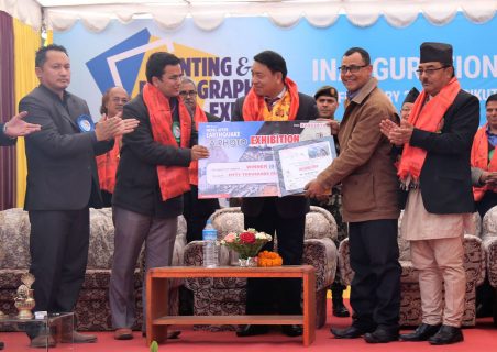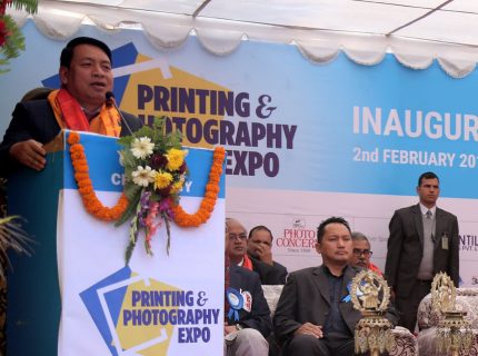 उपराष्ट्रपति उपराष्ट्रपति नन्दबहादुर पुनले भृकुटीमण्डप प्रर्दशनीकक्षमा राष्ट्रिय फोटोपत्रकार समुह केन्द्र काठमाडौंद्धारा आयोजित पहिलो अन्तर्राष्ट्रिय प्रिन्टिङ एण्ड फोटोग्राफी एक्स्पोको औपचारिक कार्यक्रमका विच सुक्रबारभब्य उद्घाटन गर्नुभयो ।
